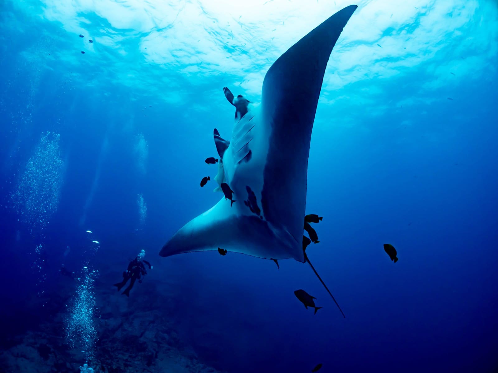 解説パネルと貴重な映像で、当館の研究成果を含めたジンベエザメやマンタの最新情報を紹介します。